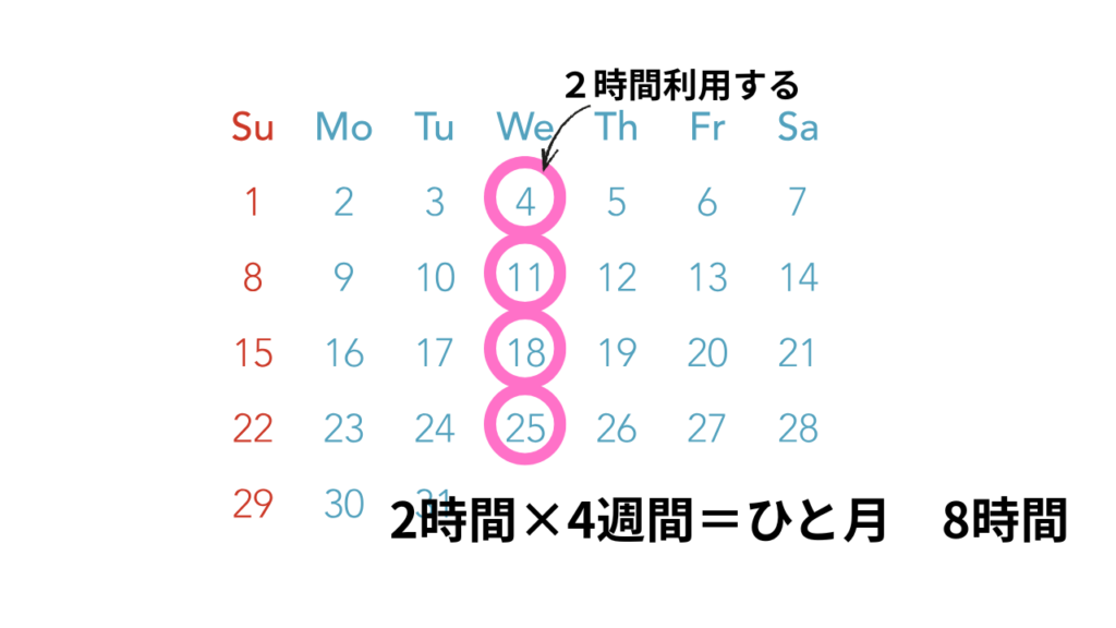1ヶ月は4〜5週あるのでひと月8時間以上の利用となります。