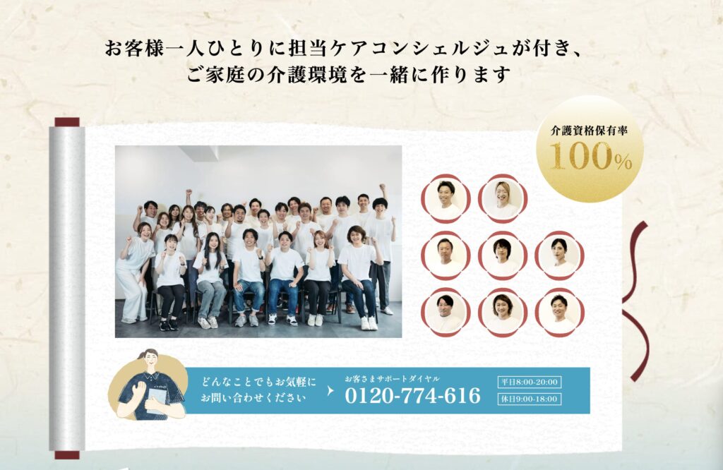 また、利用者をサポートする「ケアコンシェルジュ」も介護資格保有率100%。