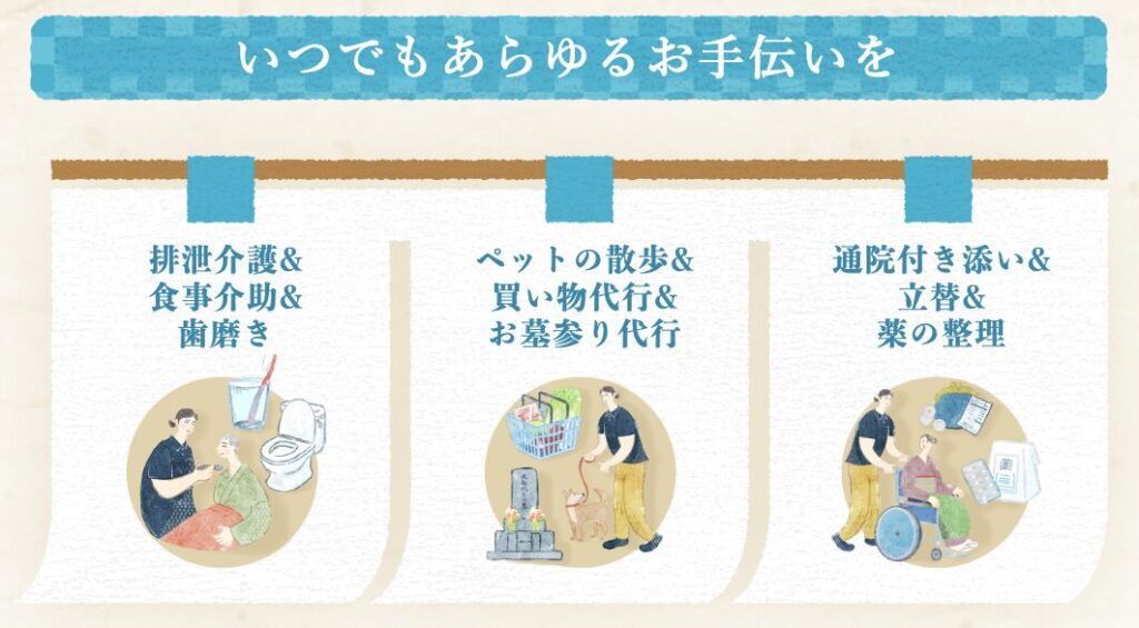 - 冠婚葬祭・買い物・旅行などへの同行もOK