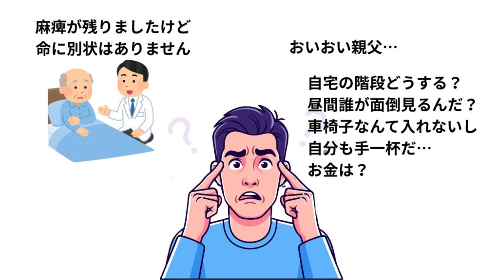 例)仕事中に急に呼び出され、病院に向かうと親の脳卒中を告げられる。